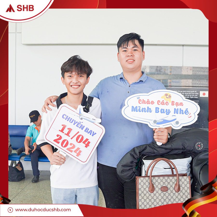 Hôm 11.04 vừa rồi nắng thật đẹp, ánh vàng trải khắp muôn nơi như muốn hòa cùng niềm vui với học viên nhà SHB. Bởi hôm ấy là ngày Khánh Linh bay đến Đức để khởi đầu chuyến hành trình tuổi trẻ của mình. Hãy cùng gửi lời chúc mừng đến chàng trai tài năng của SHB: Trần Khánh Linh – Du học nghề Đức Ngành xây dựng️.