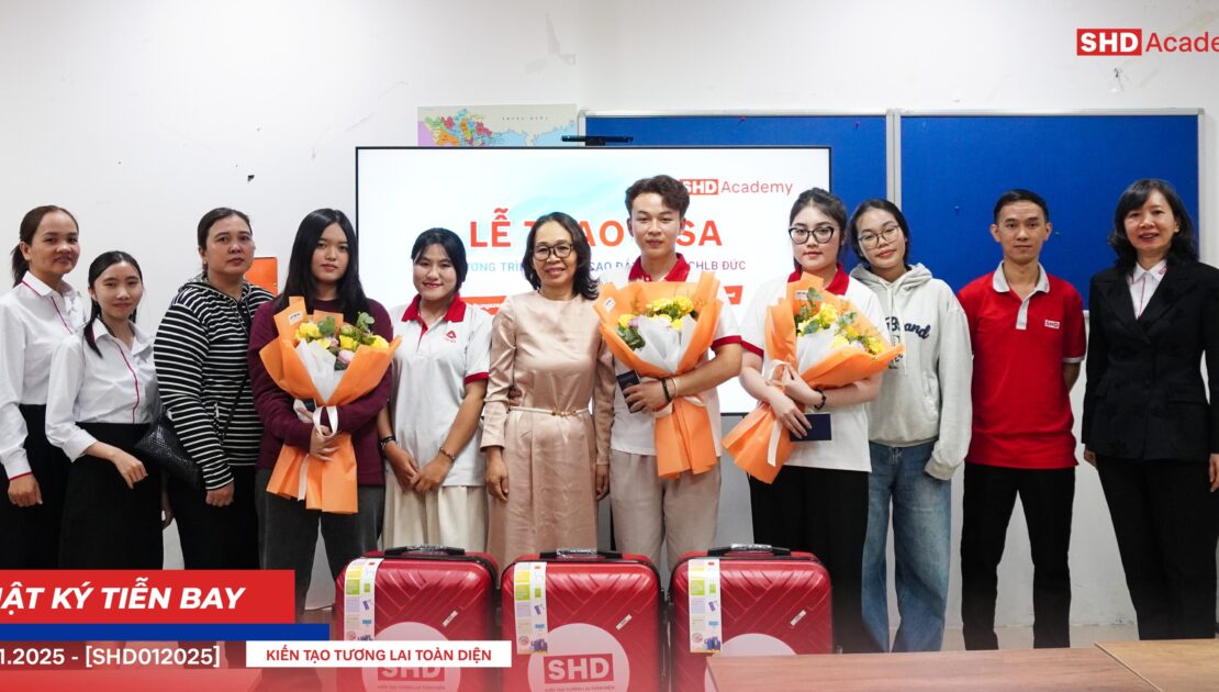 Ngày 30.06.2025, ba học viên xuất sắc của SHD: Trần Nhật Duy, Đoàn Minh Hiển, Nguyễn Hoàng An đã chính thức chinh phục tấm vé du học nghề Đức ngành nghề Chuyên viên kho vận tại Dachser – một trong những tập đoàn logistics hàng đầu thế giới. Sự kiện ghi dấu một bước ngoặt…