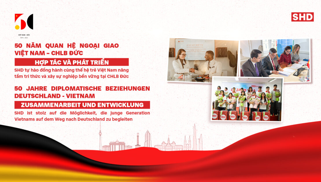 Trong bức tranh chung ấy, Công ty Cổ phần SHD Corp (SHD) tự hào là đơn vị tiên phong, đóng góp tích cực vào việc cung ứng nhân lực Việt chất lượng cao cho thị trường lao động Đức, mở ra sự giao thoa văn hóa – tri thức, góp phần kiến tạo những giá trị bền vững cho mối quan hệ hợp tác song phương.