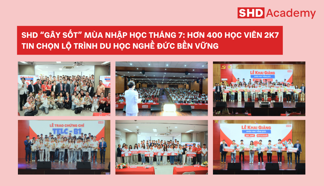 Tháng 7 rực rỡ đã khép lại với những cột mốc không thể quên tại SHD: 4 lễ khai giảng khoá học tiếng Đức liên tiếp, hơn 400 tân học viên 2K7 chính thức bắt đầu hành trình du học nghề Đức đầy hứa hẹn. Không chờ đợi một năm đại học mơ hồ, không…