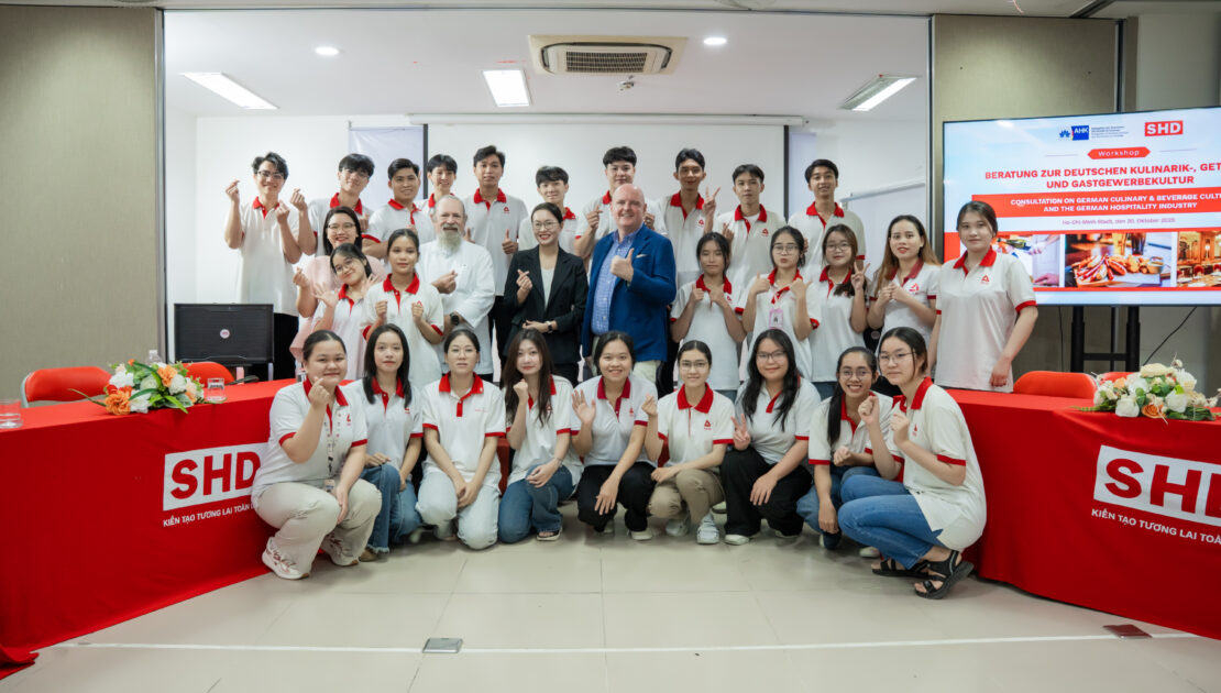 Ngày 20/10/2025, các bạn học viên ngành Nhà hàng – Khách sạn tại SHD đã có một buổi sáng đầy ý nghĩa khi được trực tiếp gặp gỡ và học hỏi từ các chuyên gia của AHK Việt Nam – đại diện chính thức của Hiệp hội các Phòng Công nghiệp và Thương mại Đức…